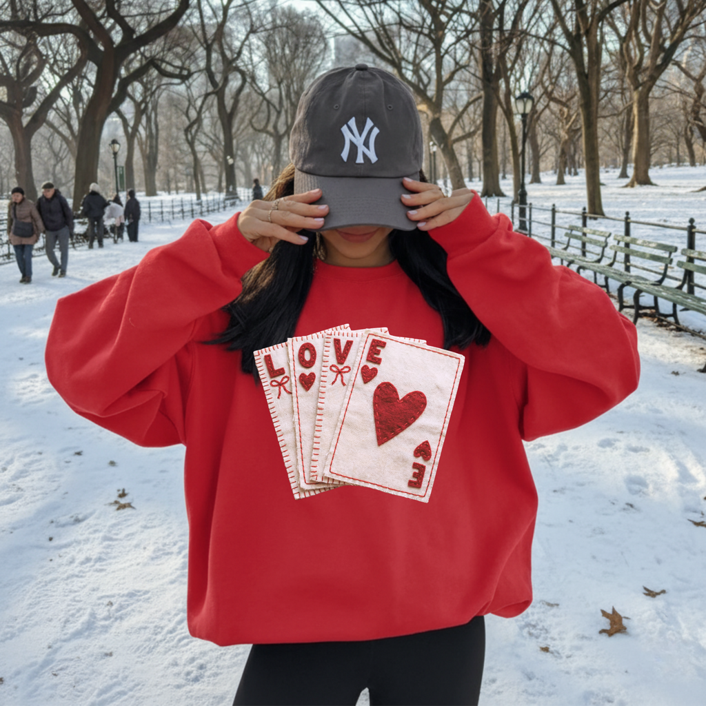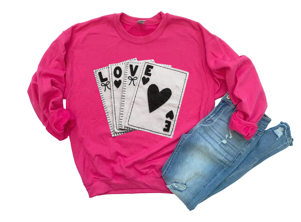 Displayed on a Unisex Heather Red, Hot Pink or Black Sweatshirt