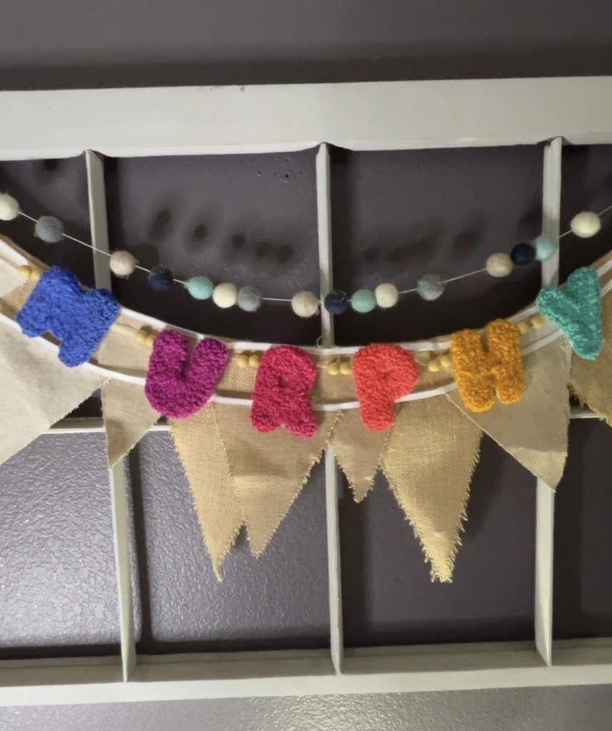 Personalized Punch Needle Name Garland. Perfect for home decor, baby's room, wall art.